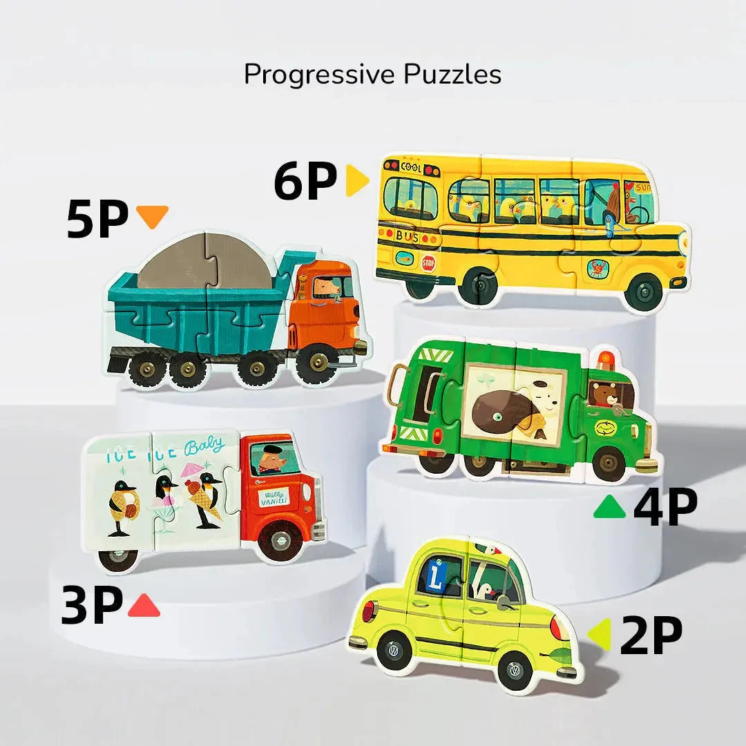 - Graduated Complexity: Puzzles range from 2 to 6 pieces, tailored to help toddlers make their first steps in puzzle assembly.